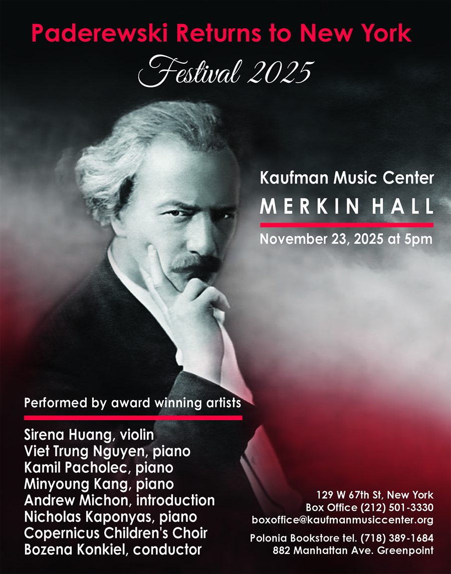 NEW YORK – This year marks the 165th anniversary of the birth of Ignacy Jan Paderewski, one of the most outstanding Poles in history. To celebrate this occasion, the Foundation of Culture and Art invites you to the Paderewski Festival 2025 Gala Concert, which will take place on Sunday, November 23 at 5 PM at the Kaufman Music Center in Manhattan.